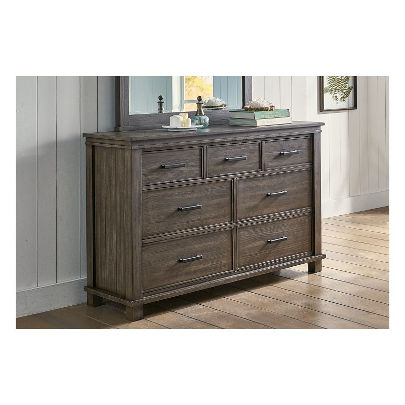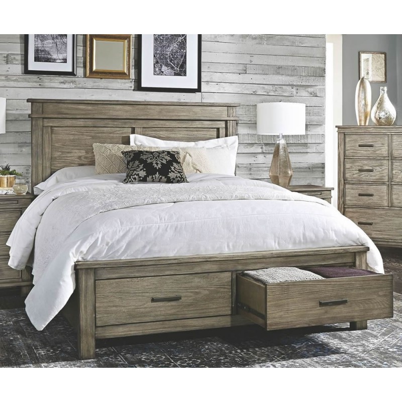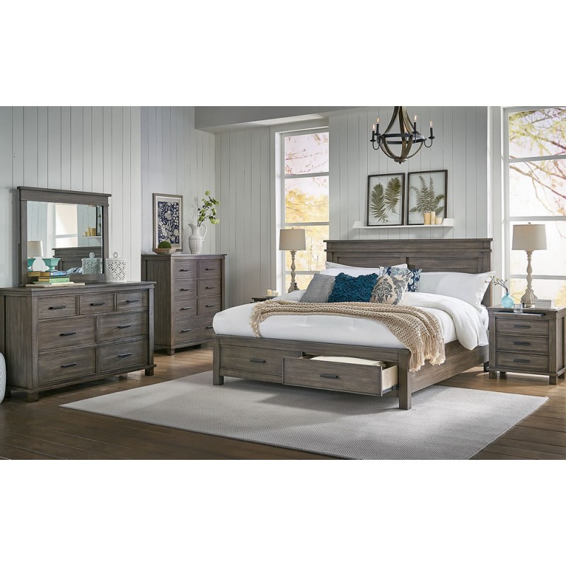 Rustic made refined. The Glacier Point bedroom set is crafted from solid reclaimed pine. Each piece is carefully designed with function and style. This collection embraces a minimalist approach and the perfect shade of sophisticated grays. Functionality is a highlight with ample storage in the solid drawer boxes constructed with ball bearing drawer glides. The nightstands have been designed with the modern convenience of USB charging ports. Available with storage or non-storage bed frames, the Glacier Point bedroom allows you to create a space that is soothing and transitional with a designer look.